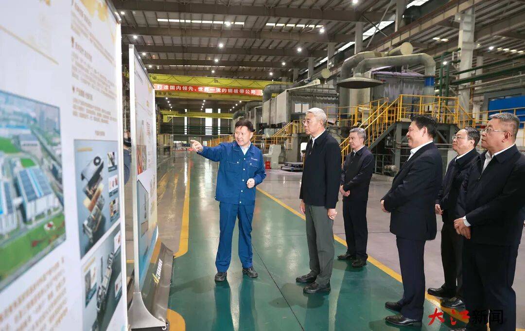 江铜集团是我省最大国有企业和世界500强企业,尹弘十分关注企业深化改革和发展情况。在江铜高精铜板带公司,尹弘走进生产车间,察看熔铸、热轧、冷轧等工艺流程,鼓励企业锚定高端铜加工赛道,强化创新驱动,加快向价值链高端迈进。公司加快产品迭代升级,有效破解“卡脖子”技术。0.1毫米、0.04毫米、0.016毫米……在“薄如蝉翼”的铜板带材产品中,江铜不断进行着极限挑战。尹弘详细了解铜板合金产品技术和市场情况,要求强化高端产品供给,积极对接AI算力、新能源等战略领域,持续提高精深加工比重,大幅提升产品附加值,不断扩大市场规模,培育打造新增长点。