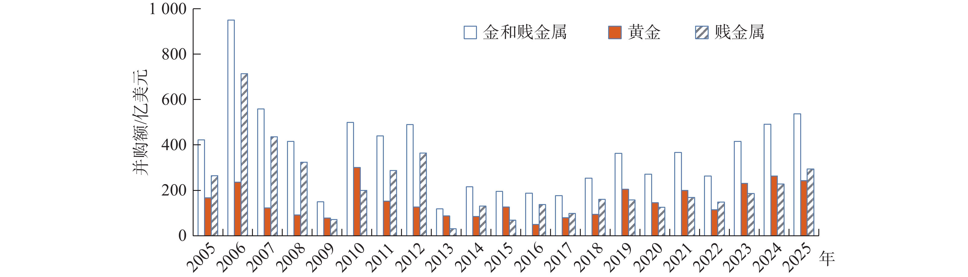 根据环球数据公司(Global Data)统计,2024年全球矿业并购1 586宗,其中,超过10亿美元的巨型并购24宗,同比增长33%;并购总额910亿美元,同比下降75%。2025年全球矿业并购呈现增长趋势,其中,第三季度并购额为400亿美元,同比增长46%;巨型并购额为280亿美元,同比增长78%[12]。