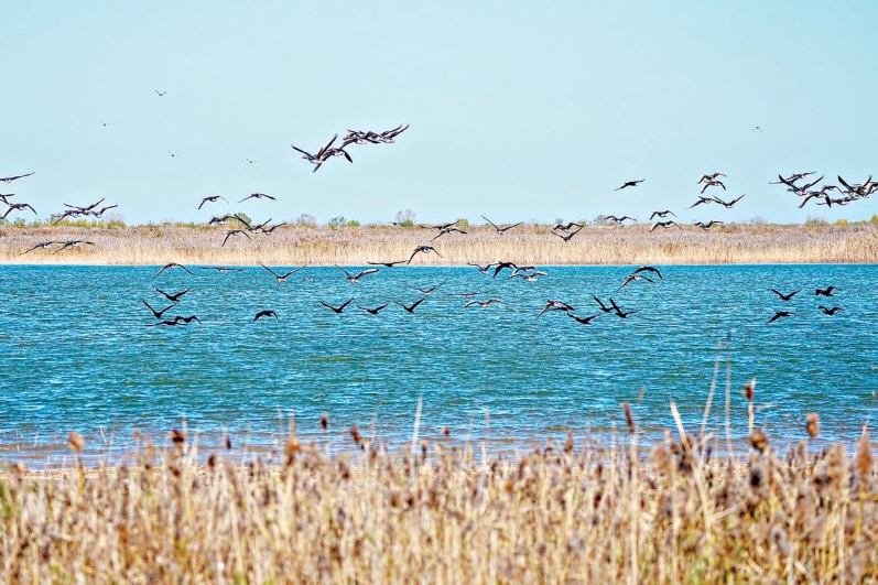 黄河三角洲国家级自然保护区内,越冬候鸟在飞翔。朱峥 摄